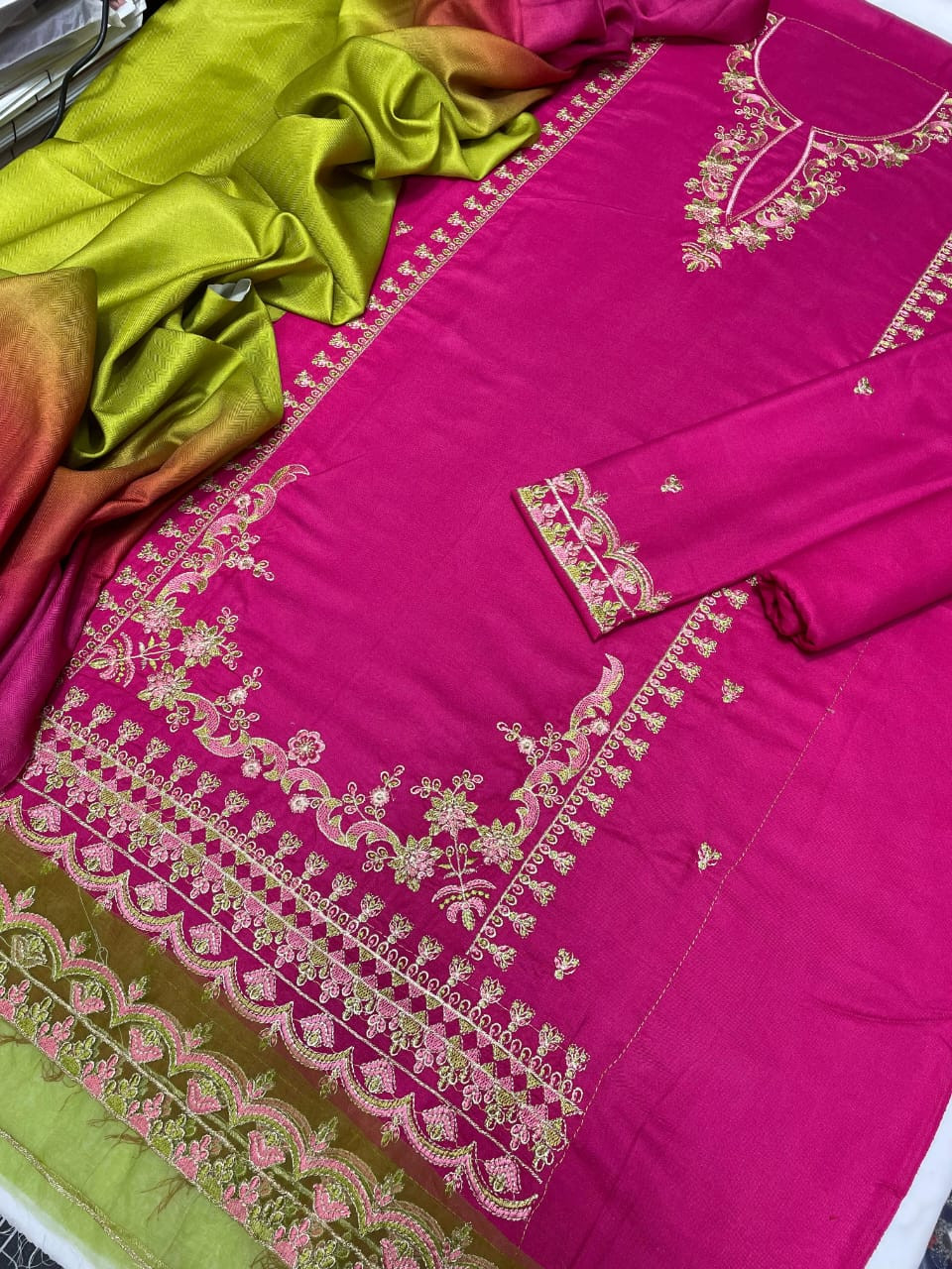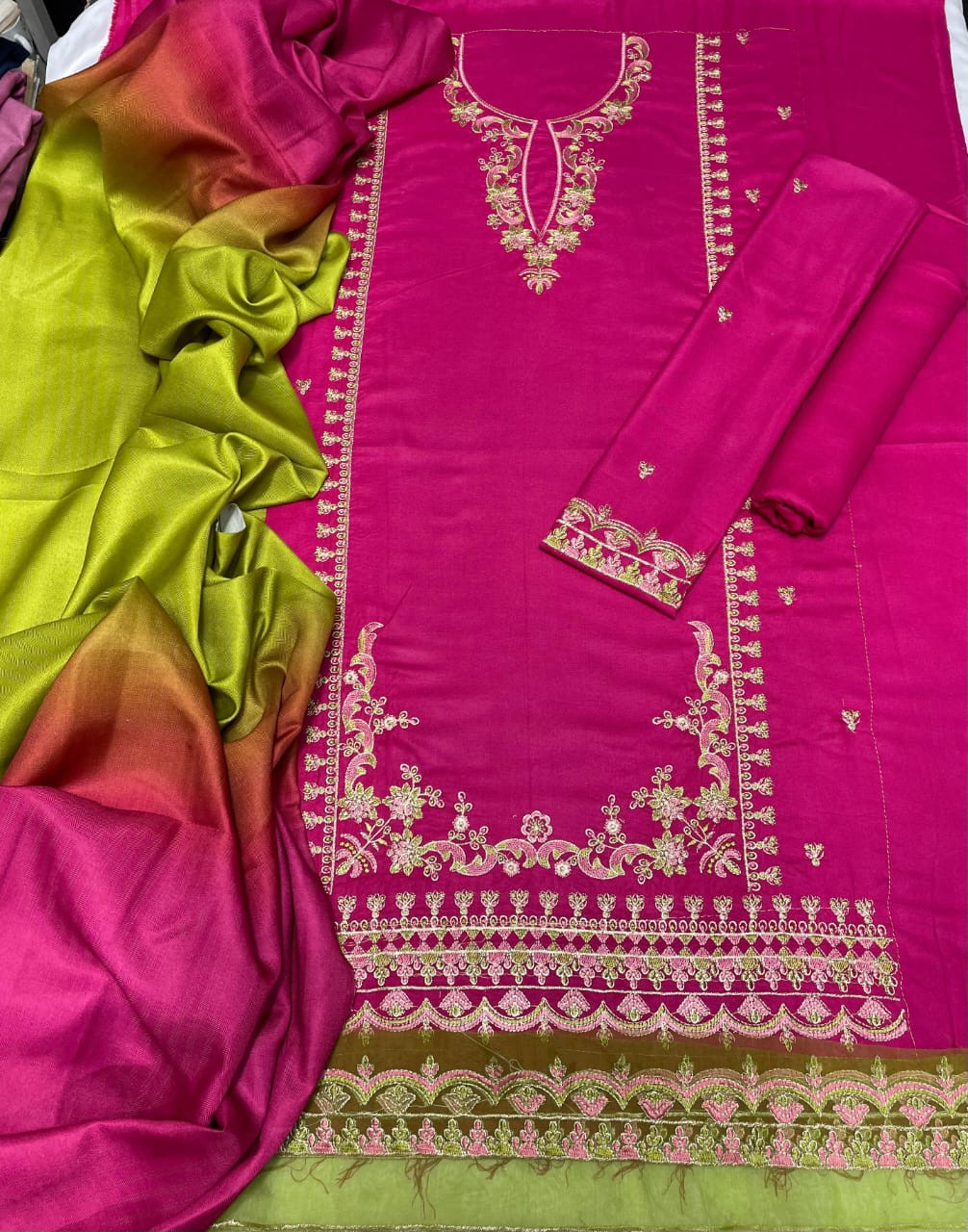 Fabric Premium 3PC Dhanak Suit with Wool Printed Shawl