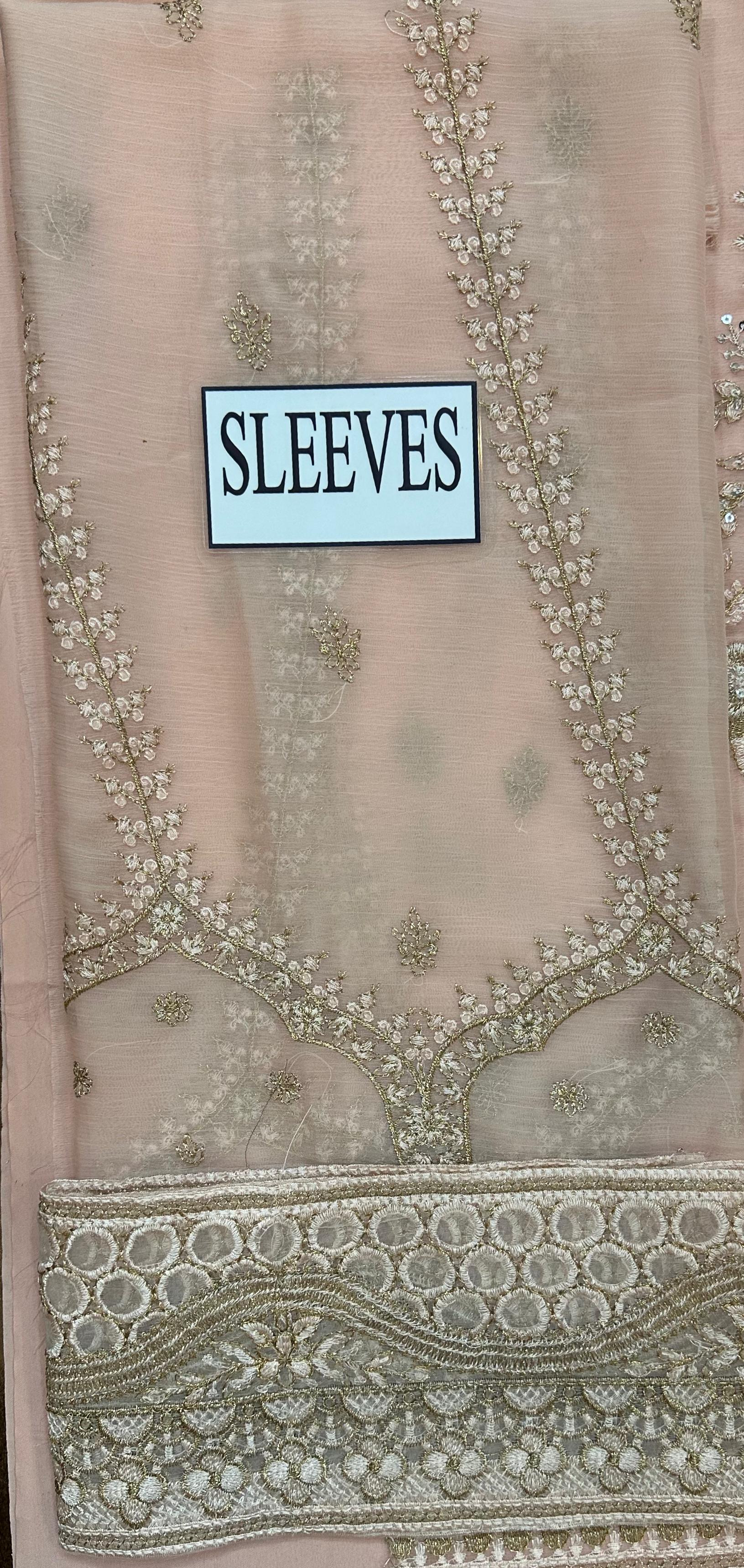 Semi pure chiffon embroidered sleeves