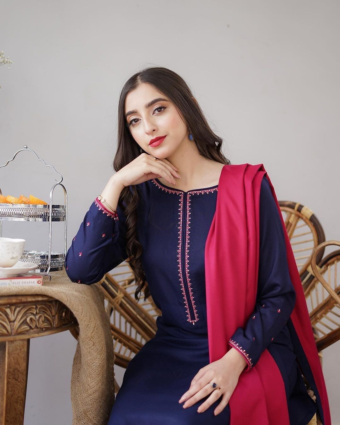 Overall look navy blue tilla embroidered