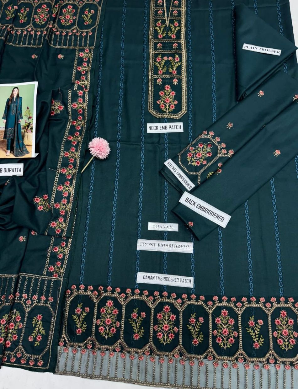 Heavy embroidery ready to wear dhanak shawl